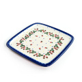 お洒落な20cm四方の角皿。製造元での名称は「Dawid dessert plate」。ケーキを1台載せたりもできますし、小さなケーキを幾つか載せても取りやすく扱いやすいお皿です。ラウンドのプレートと共に使うことで、テーブルにアクセントが生まれ、スタイリッシュなセッティングを可能にしてくれる優れモノ。フラットなのでかさ張らず一枚あるだけでもとても便利で、絵画的な美しさもあるので使わない時には皿立てを使って飾っている方も多い素敵な1枚です。