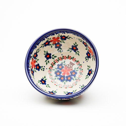 手にも馴染みやすい小ぶりのボウル。ヨーグルトやアイスクリームなどに使いたくなるサイズ感です。ムースやプリン、杏仁豆腐などを冷やし固めるデザートにもぴったり。和の食卓では副菜を入れる小鉢のような使い方もおすすめです。ポーリッシュポタリーらしく内側(見込み)にも絵付けが施されている贅沢な仕様で、使うたびに愛着を感じていただけます。小さなスプーンと併せて可愛らしい贈り物にする方も多い人気のボウルです。
