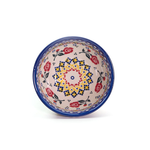 手にも馴染みやすい小ぶりのボウル。ヨーグルトやアイスクリームなどに使いたくなるサイズ感です。ムースやプリン、杏仁豆腐などを冷やし固めるデザートにもぴったり。和の食卓では副菜を入れる小鉢のような使い方もおすすめです。ポーリッシュポタリーらしく内側(見込み)にも絵付けが施されている贅沢な仕様で、使うたびに愛着を感じていただけます。小さなスプーンと併せて可愛らしい贈り物にする方も多い人気のボウルです。