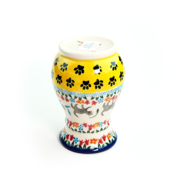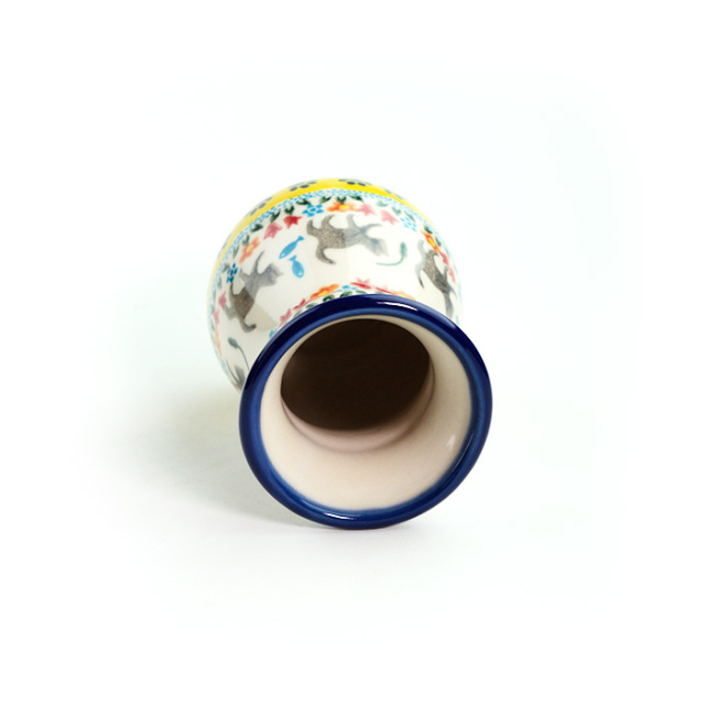 小さな花束を活けておくのに丁度良い花瓶です。テーブルやエントランス、お気に入りのコーナーに花やグリーンがあると爽やかで潤いのある生活になります。ポーリッシュポタリーの花瓶は、適度な重みがあり水を入れると更に安定感が増します。日々の暮らしの中で是非使ってみてください。