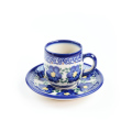 カフェで使用される業務用のエスプレッソカップはどれも少し厚みのあるフォルムですが、もともとちょっとぽってりと厚ぼったいポーリッシュポタリーは、エスプレッソ用のカップとしてもぴったりです。 ダブルにも対応できる容量で、少なめのコーヒー用としても使えます。少し縦長のカップと径の小さなソーサーとのバランスもエレガントな雰囲気です。