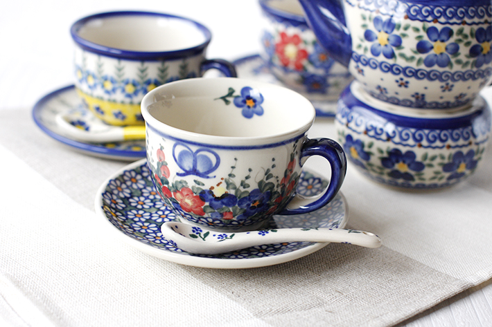小さな撹拌用のスプーン。ミルクやお砂糖を混ぜるために、カップ&ソーサーに添える時にはぴったりです。浅いカーブなので、混ぜて使うドレッシングやタレに添えるのもおすすめ。ポーリッシュポタリーらしく、表だけでなく裏にも丁寧に絵付されています。