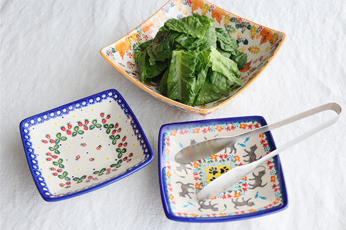 製造元での名称は「Toffi mini bowl」。タフィーボウル(V161)のミニサイズです。丸いボウルとは一味違った器として、楽しくご利用いただけます。サラダや和え物、中華や煮物などの銘々の取り皿として丁度良い大きさです。大きなタフィーボウル(V161)と同時に使うのもおすすめ。大小含めてすべてを柄違いで楽しんでも違和感なく使えます。