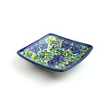 赤い薔薇のデザイン(625)との色違いで、こちらは青い薔薇と散りばめられた枝葉で構成されています。寒色系の色使いは、きつね色に揚がったフライ類や、唐揚げやステーキなどの肉類も美味しそうに映ります。紺色で縁取られるリムが引き締まった印象を与えています。