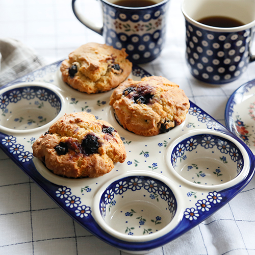 マフィンやカップケーキが作れる陶器製のマフィン型。ポーリッシュポタリーならではの行き届いた絵付けが嬉しくなります。陶器製の焼き型は、ゆっくりとむらなく熱伝導をさせるという特長があるので、マフィンもふっくら美味しく出来上がります。 どっしりした丈夫さで、キッチンに存在するだけでも嬉しくなる可愛らしさ!裏返してもVENA社らしい丁寧さを確認することができます。お菓子作りやトマトのファルシーなど様々なオーブン料理に是非ご利用ください。