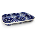 マフィンやカップケーキが作れる陶器製のマフィン型。ポーリッシュポタリーならではの行き届いた絵付けが嬉しくなります。陶器製の焼き型は、ゆっくりとむらなく熱伝導をさせるという特長があるので、マフィンもふっくら美味しく出来上がります。 どっしりした丈夫さで、キッチンに存在するだけでも嬉しくなる可愛らしさ!裏返してもVENA社らしい丁寧さを確認することができます。お菓子作りやトマトのファルシーなど様々なオーブン料理に是非ご利用ください。