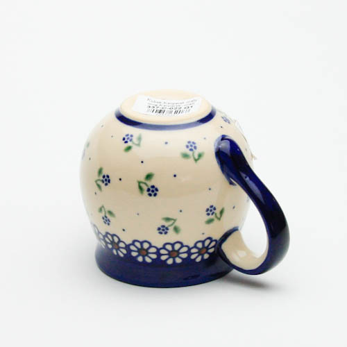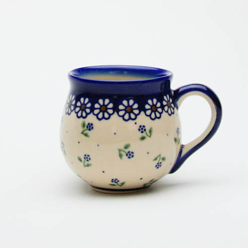 飲み口の下の部分がくびれて、膨らんだボディ。ポーランド食器の特徴的な形状で、最も人気のある形のマグカップです。気取らない毎日のお茶の時間におすすめのサイズで、ストレートで飲むコーヒーや紅茶にも丁度良いサイズです。