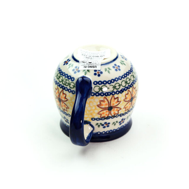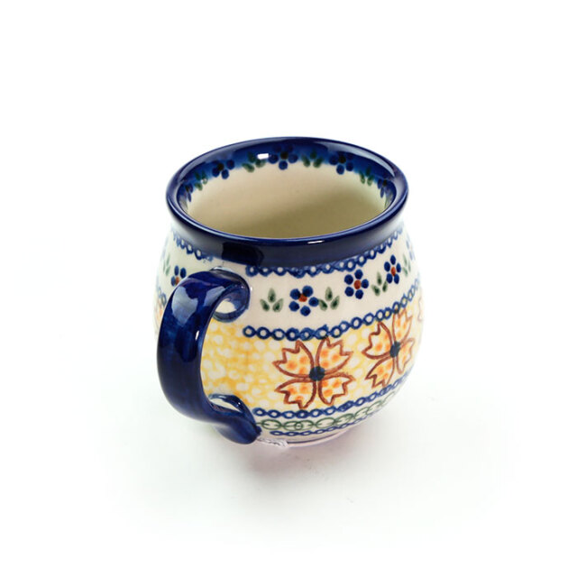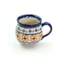 飲み口の下の部分がくびれて、膨らんだボディ。ポーランド食器の特徴的な形状で、最も人気のある形のマグカップです。気取らない毎日のお茶の時間におすすめのサイズで、ストレートで飲むコーヒーや紅茶にも丁度良いサイズです。