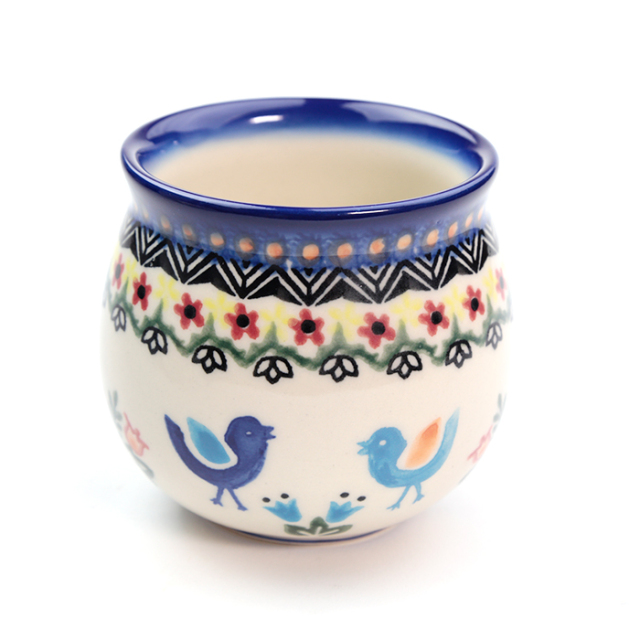 ポーリッシュポタリーといえば、このマグのフォルムを連想する方が最も多いに違いない特徴的なマグ。その昔、農民が畑作業に持って行っていたマグが原型になっていて、膨らんだ形とすぼまった飲み口によって飲み物を冷めにくくしています。 カップの胴がストレートなものと比べると一見珍しい形ですが、ポーリッシュマグの飲み口は口元に寄り添うように作られているので、使ってみるとその良さを実感していただけます。