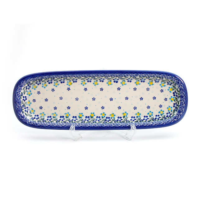 どっしりとした大きさとシャープなシルエットは、ポーリッシュポタリーのセンターを務めるに相応しい風格に満ちています。前菜や、串ものの料理、数種のバリエーションを持つ料理も、並べるだけで絵になる華やかな美しいプレートです。