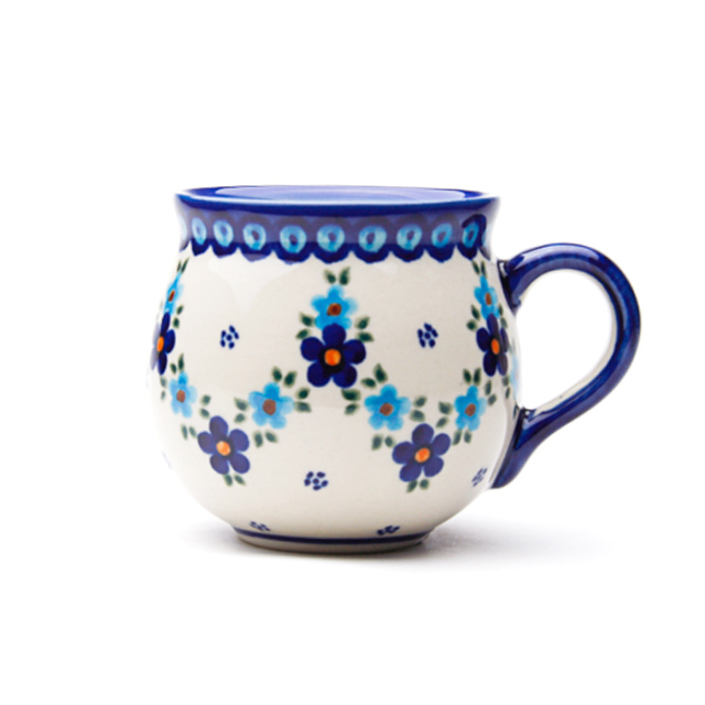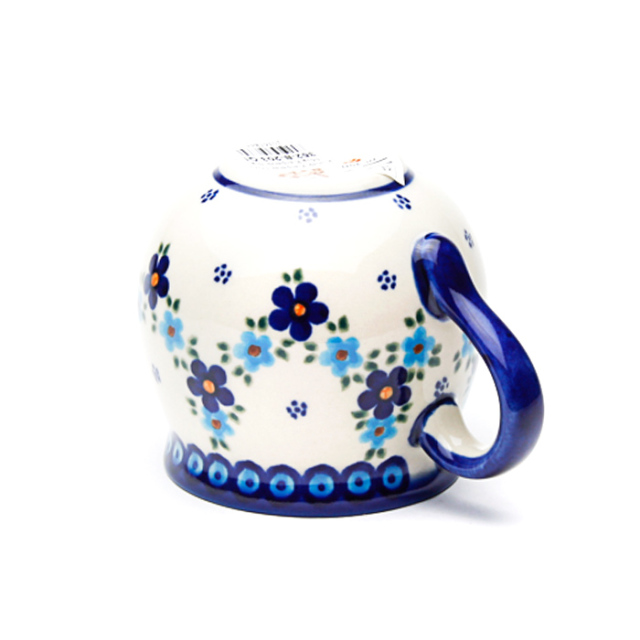飲み口の下の部分がくびれて、膨らんだボディ。ポーランド食器の特徴的な形状で、最も人気のある形のマグカップ。大きなサイズでミルクをたっぷり入れて飲みたいカフェオレやスープカップとしてのご利用もおすすめ。
