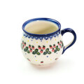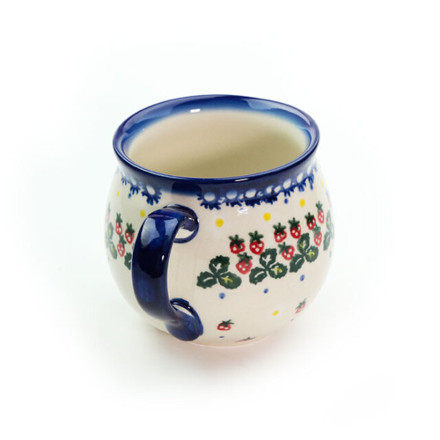 飲み口の下の部分がくびれて、膨らんだボディ。ポーランド食器の特徴的な形状で、最も人気のある形のマグカップ。大きなサイズでミルクをたっぷり入れて飲みたいカフェオレやスープカップとしてのご利用もおすすめ。