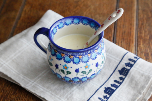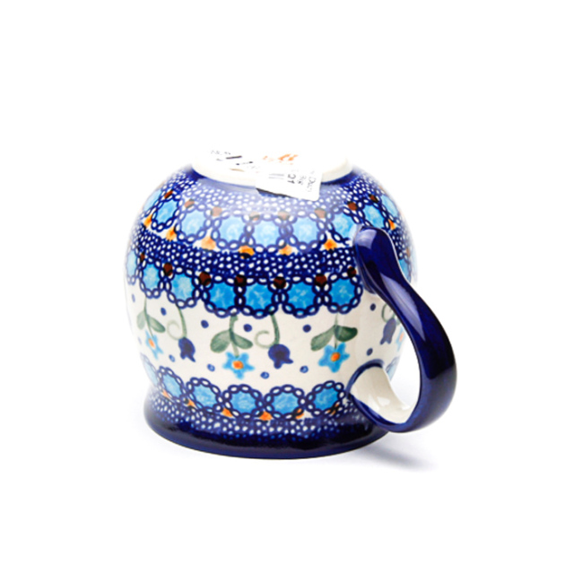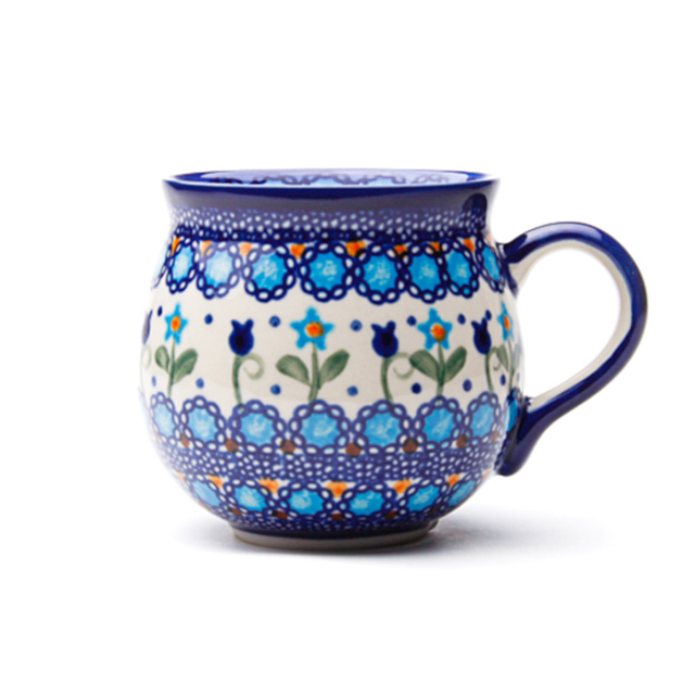 飲み口の下の部分がくびれて、膨らんだボディ。ポーランド食器の特徴的な形状で、最も人気のある形のマグカップ。大きなサイズでミルクをたっぷり入れて飲みたいカフェオレやスープカップとしてのご利用もおすすめ。