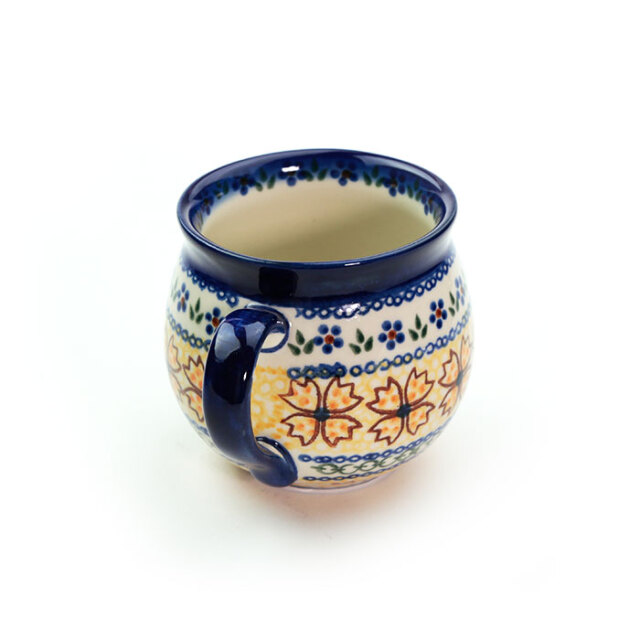 飲み口の下の部分がくびれて、膨らんだボディ。ポーランド食器の特徴的な形状で、最も人気のある形のマグカップ。大きなサイズでミルクをたっぷり入れて飲みたいカフェオレやスープカップとしてのご利用もおすすめ。