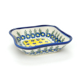 縁取りが柔らかにシェイプされたスクエアな器。3cmほどの深さもあり、色々な料理が安心して乗せられます。スタッキング性にも優れ、食器棚のスペース確保も楽なフォルムです。内側は勿論、外側の立ち上がりの部分にも行き届いた絵付けが施されています。