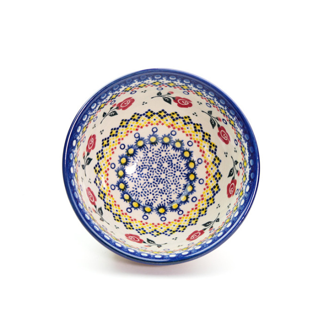 見込みの部分まで贅沢に絵付けが施されたポーリッシュポタリーらしい大変手の込んだカフェオレボウルです。しっかりした作りで安定感にも優れ、プレミアムな雰囲気は抜群。朝からたっぷりのカフェオレを注ぎ、傍らにクロワッサンがあれば、それだけで絵になるようなとても美しいシェイプが最大の魅力です。中身が冷めにくいので、シチューやチャウダーなど具沢山のスープにもぴったり!