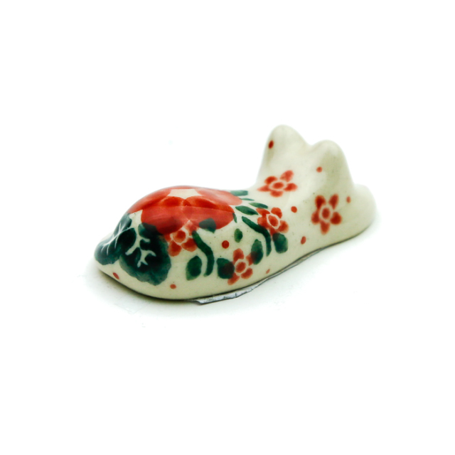 赤い花が鮮やかに散りばめられた華やかな意匠。ポーリッシュポタリーに多く使われる青色の中でアクセントカラーにもなってくれます。