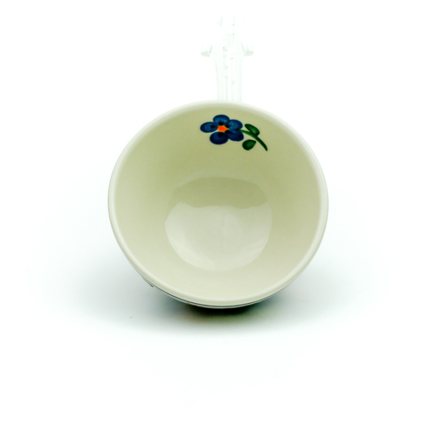 日本からのリクエストに応え、VENA社が作ってくれたご飯茶碗。サイズは大小あって、これは小さな方です。小ぶりのご飯茶碗をお探しの方やお子様に丁度良く、手にも馴染み易いコロンとした愛らしいフォルムをしています。通常は見込み部分まで絵付けされていることが多いポーリッシュポタリーですが、ご飯茶碗ゆえにあえて見込み部分は絵付けを省いてあります。それでもユニーク柄以上のランクには、マグ同様にさりげなく内側にもちょっとだけワンポイントが施されており、VENA社らしいお洒落な雰囲気は健在です。