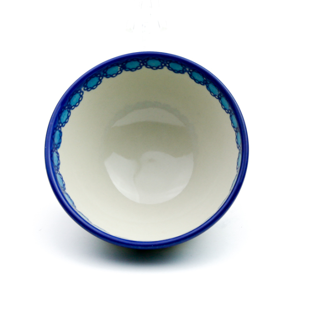 日本からのリクエストに応え、VENA社が作ってくれたご飯茶碗。サイズは大小あって、これは大きな方です。普通に食べたい場合もお茶漬けが好物な方にもおすすめで、食べ盛りのお子様にも丁度良いサイズ感だと思います。コロンとした愛らしいフォルムは、毎日のご飯をきっと楽しくしてくれるに違いありません。通常は見込み部分まで絵付けされていることが多いポーリッシュポタリーですが、ご飯茶碗ゆえにあえて見込み部分は絵付けを省いてあります。それでもユニーク柄以上のランクには、マグ同様にさりげなく内側にもちょっとだけワンポイントが施されており、VENA社らしいお洒落な雰囲気は健在です。