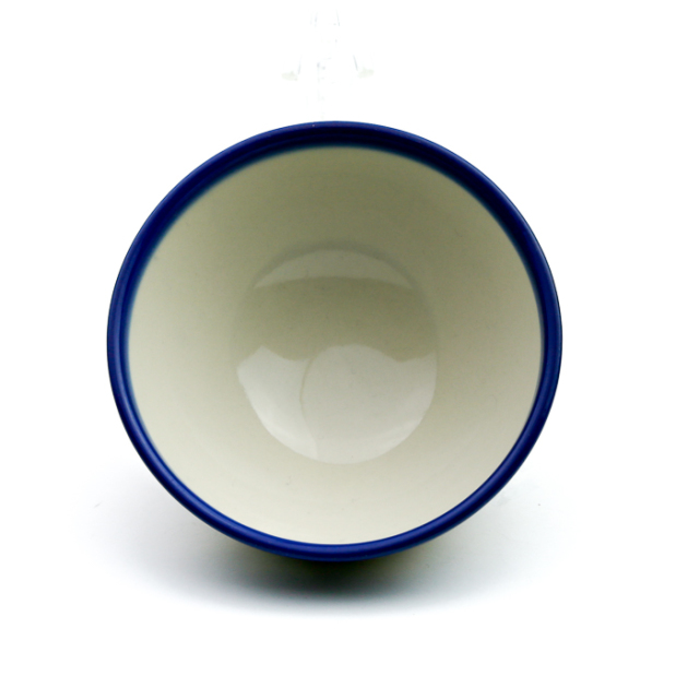 日本からのリクエストに応え、VENA社が作ってくれたご飯茶碗。サイズは大小あって、これは大きな方です。普通に食べたい場合もお茶漬けが好物な方にもおすすめで、食べ盛りのお子様にも丁度良いサイズ感だと思います。コロンとした愛らしいフォルムは、毎日のご飯をきっと楽しくしてくれるに違いありません。通常は見込み部分まで絵付けされていることが多いポーリッシュポタリーですが、ご飯茶碗ゆえにあえて見込み部分は絵付けを省いてあります。それでもユニーク柄以上のランクには、マグ同様にさりげなく内側にもちょっとだけワンポイントが施されており、VENA社らしいお洒落な雰囲気は健在です。