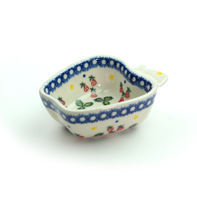 ポーランドでもいちごはとても好まれる身近な果物です。リアルな葉っぱの形状と、小さないちごがあどけない印象のパターンデザインは、素朴でほっこりした心和む雰囲気です。