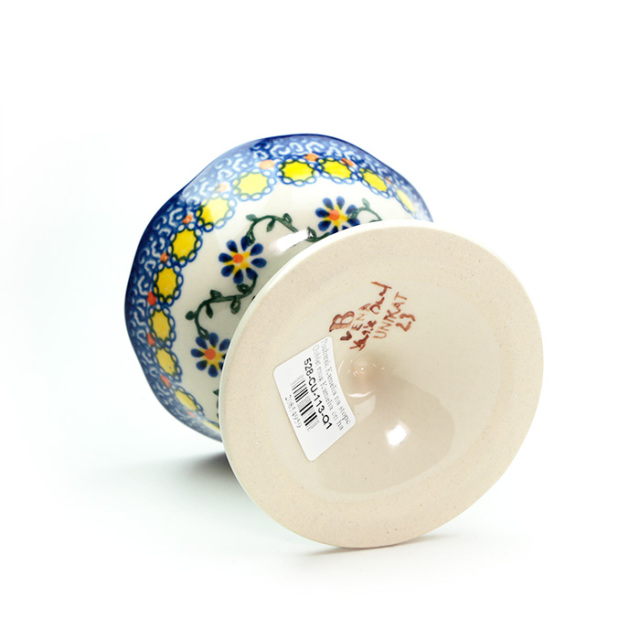 ケルセンでは定番のU006柄の青いスタンプを黄色に置き換えたようなパターンデザイン。グリーンの蔓で結ばれた花が愛らしく、青と黄色のコントラストが独特な雰囲気を出しています。VENA社のヴロツワフの直営店でも人気の絵柄だそうです。