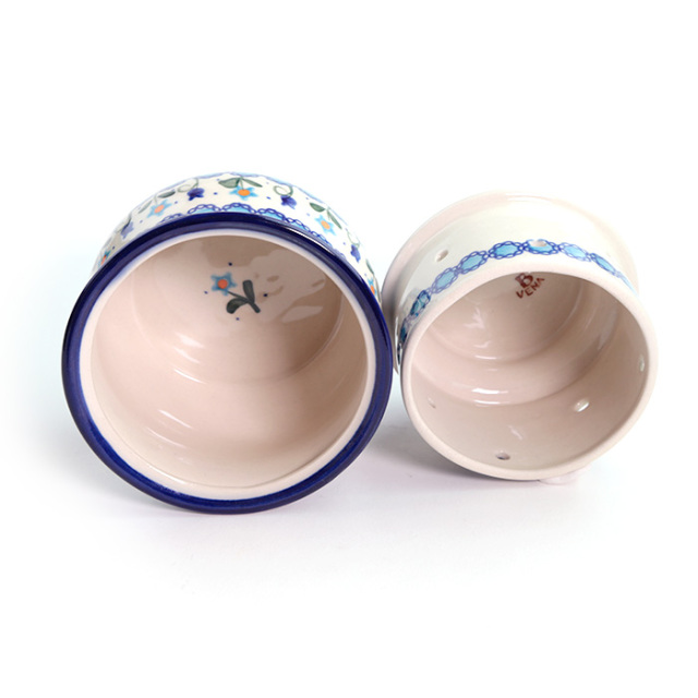 冷蔵庫の無い時代のフランスが発祥と言われている、バターを常温保存するための容器です。冷蔵庫保存の固いバターではなく、クリーミーな状態のものをパンに塗ることができる優れもの。上に被さっている穴の開いたカップに常温で柔らかくなったバターを詰め、下のカップ部分に水を入れて、空気を遮断して保存する仕組みです。