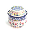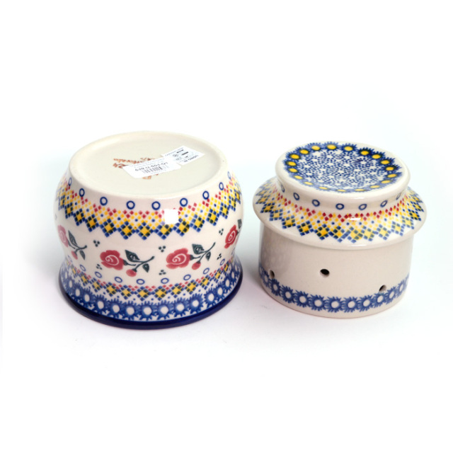 冷蔵庫の無い時代のフランスが発祥と言われている、バターを常温保存するための容器です。冷蔵庫保存の固いバターではなく、クリーミーな状態のものをパンに塗ることができる優れもの。上に被さっている穴の開いたカップに常温で柔らかくなったバターを詰め、下のカップ部分に水を入れて、空気を遮断して保存する仕組みです。