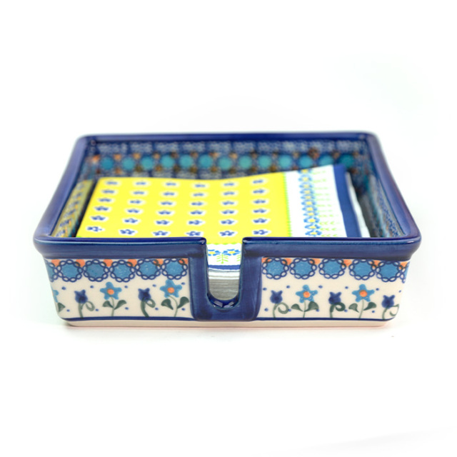 折り畳み時16.5cm×16.5cm位の4つ折りサイズのペーパーナプキンが、丁度収まる陶器製のホルダーです。ケルセンで販売しているペーパーナプキンにもぴったり。スタンドタイプとは異なり水平に重ね置きするタイプは、倒れることなくナプキンをキープし、ナプキンのデザインを隠すことなくホールドします。また、取り出し口が作られていることにより使いやすく、どっしりとした作りで安定感も抜群です。外側は勿論内側にも細やかな絵付けが施されている大変豪華なアイテムは、毎日をお洒落に、パーティなどハレの日を素敵に演出してくれます。