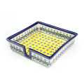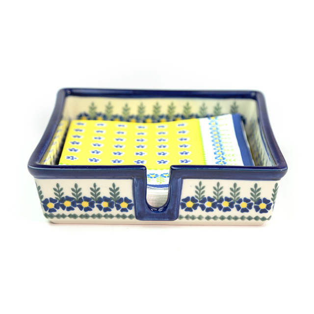折り畳み時16.5cm×16.5cm位の4つ折りサイズのペーパーナプキンが、丁度収まる陶器製のホルダーです。ケルセンで販売しているペーパーナプキンにもぴったり。スタンドタイプとは異なり水平に重ね置きするタイプは、倒れることなくナプキンをキープし、ナプキンのデザインを隠すことなくホールドします。また、取り出し口が作られていることにより使いやすく、どっしりとした作りで安定感も抜群です。外側は勿論内側にも細やかな絵付けが施されている大変豪華なアイテムは、毎日をお洒落に、パーティなどハレの日を素敵に演出してくれます。