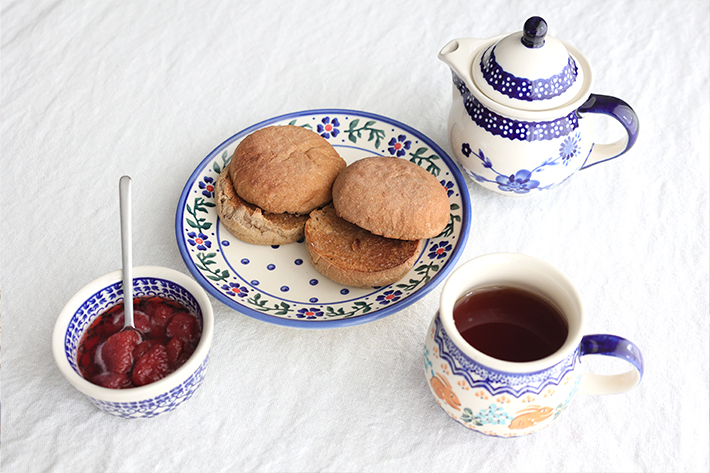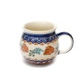 ポーリッシュポタリーといえば、このマグのフォルムを連想する方が最も多いに違いない特徴的なマグ。その昔、農民が畑作業に持って行っていたマグが原型になっていて、膨らんだ形とすぼまった飲み口によって飲み物を冷めにくくしています。