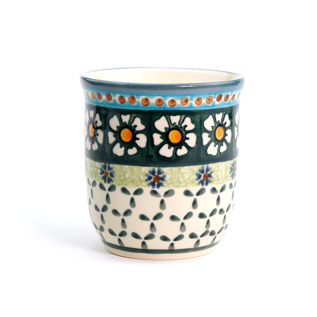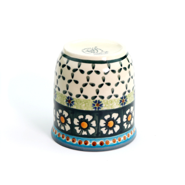 ヴィザ社のデザイナーAdam Jop(アダム・ヨップ)氏によって作られたポーリッシュポタリーの有名な柄です。青系が多いポーリッシュポタリーの中ではちょっと珍しいグリーン系で、「カモミール」がモティーフとなっており、男女を問わない人気を持っています。