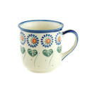 WIZA社での名称は"CLASSIC MUG"。ボディがストレートに作られている標準的なマグカップ。ハンドメイドならではの味わいがあり、ぽってりとしたポーリッシュポタリーならではの雰囲気は健在です。生地の適度な厚みは飲み物の温度を保ってくれるので、温かさも長持ちします。