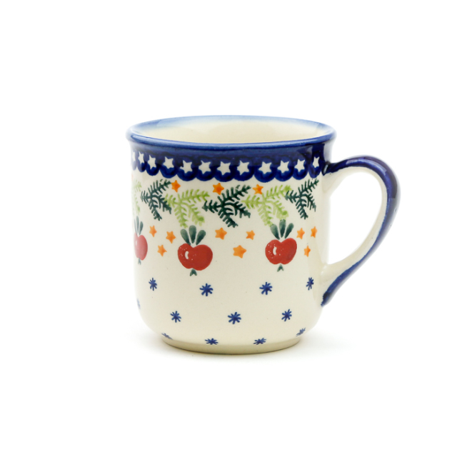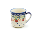 WIZA社での名称は"CLASSIC MUG"。ボディがストレートに作られている標準的なマグカップ。ハンドメイドならではの味わいがあり、ぽってりとしたポーリッシュポタリーならではの雰囲気は健在です。生地の適度な厚みは飲み物の温度を保ってくれるので、温かさも長持ちします。