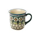 WIZA社での名称は"CLASSIC MUG"。ボディがストレートに作られている標準的なマグカップ。ハンドメイドならではの味わいがあり、ぽってりとしたポーリッシュポタリーならではの雰囲気は健在です。生地の適度な厚みは飲み物の温度を保ってくれるので、温かさも長持ちします。