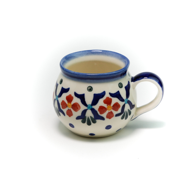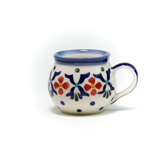 WIZA社のポーリッシュマグで最も小さいサイズ。小さくなってさらに可愛さ倍増です。本国ポーランドではエスプレッソ用として作られており、デミカップコレクターの方にも大好評のカップです。前菜の一口でいただくコンソメジュレを入れたり、デザート用の小さなムースを冷やし固めたりしても素敵です。テーブルに置いて楊枝入れに使っている方も多い愛らしいポーリッシュポタリーです。