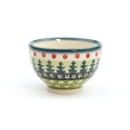 もみの木がモティーフになっているクリスマスにぴったりのデザインです。もみの木のスタンプがとてもWIZA社らしい味を出しています。ポーリッシュポタリーに用いられる色としては比較的少ないグリーン系の配色で、赤いドットがとても効果的に配置されているところも素敵です。眺めているうちに心が和んでくる素朴な温もりに包まれています。