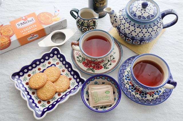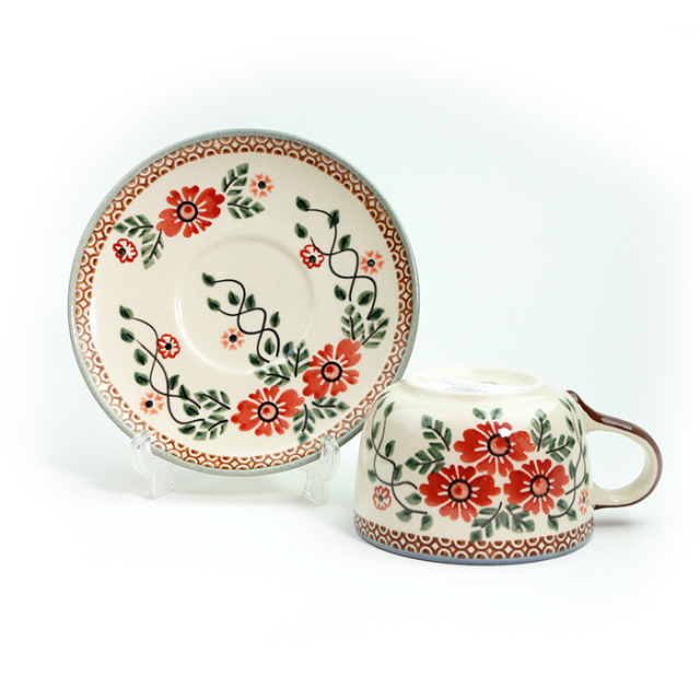 華奢な作りの気取った上品さではなく、しっかりとした厚みのある作りで、素朴な温かみを持っているのがWIZA社のカップ&ソーサーです。骨太な印象ですがとても丈夫。毎日使い続けていても縁などが欠けることも滅多にありません。カップをのせると見えなくなるお皿の中心部にもきっちり絵付けが施されているところも素敵です。