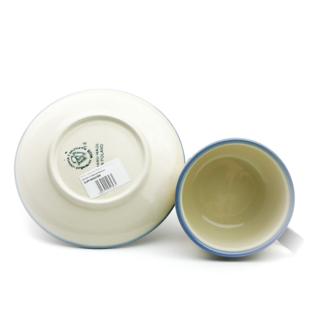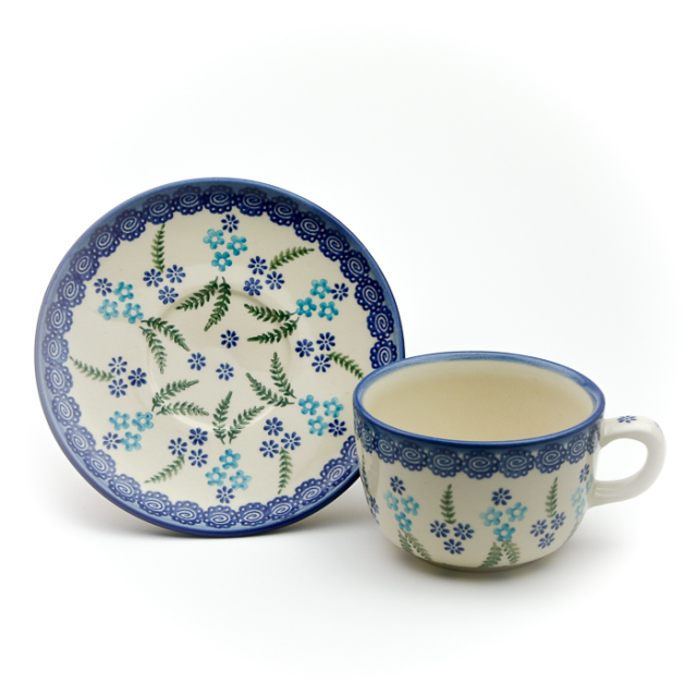 華奢な作りの気取った上品さではなく、しっかりとした厚みのある作りで、素朴な温かみを持っているのがWIZA社のカップ&ソーサーです。骨太な印象ですがとても丈夫。毎日使い続けていても縁などが欠けることも滅多にありません。カップをのせると見えなくなるお皿の中心部にもきっちり絵付けが施されているところも素敵です。