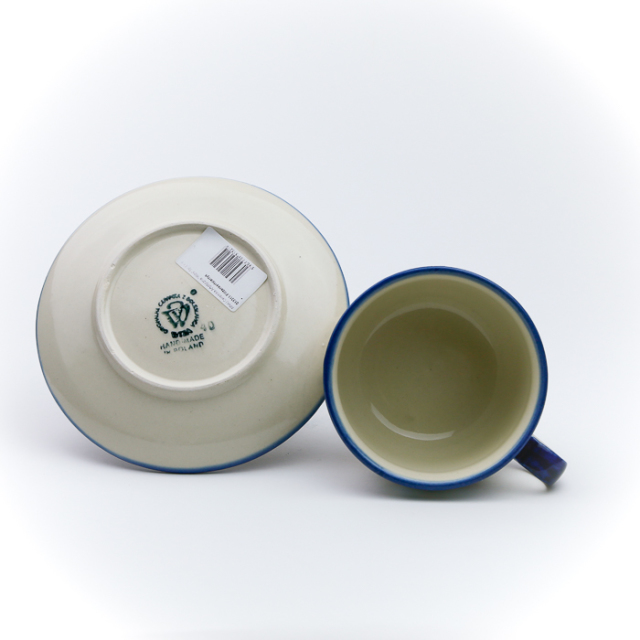 華奢な作りの気取った上品さではなく、しっかりとした厚みのある作りで、素朴な温かみを持っているのがWIZA社のカップ&ソーサーです。骨太な印象ですがとても丈夫。毎日使い続けていても縁などが欠けることも滅多にありません。カップをのせると見えなくなるお皿の中心部にもきっちり絵付けが施されているところも素敵です。