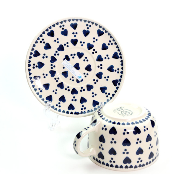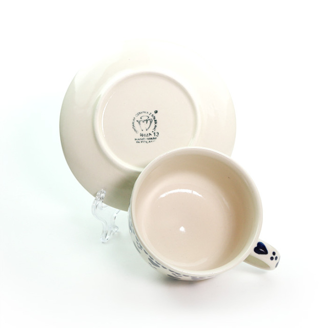華奢な作りの気取った上品さではなく、しっかりとした厚みのある作りで、素朴な温かみを持っているのがWIZA社のカップ&ソーサーです。骨太な印象ですがとても丈夫。毎日使い続けていても縁などが欠けることも滅多にありません。カップをのせると見えなくなるお皿の中心部にもきっちり絵付けが施されているところも素敵です。