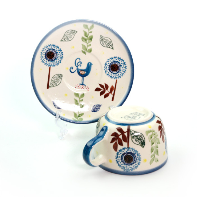 華奢な作りの気取った上品さではなく、しっかりとした厚みのある作りで、素朴な温かみを持っているのがWIZA社のカップ&ソーサーです。骨太な印象ですがとても丈夫。毎日使い続けていても縁などが欠けることも滅多にありません。カップをのせると見えなくなるお皿の中心部にもきっちり絵付けが施されているところも素敵です。