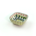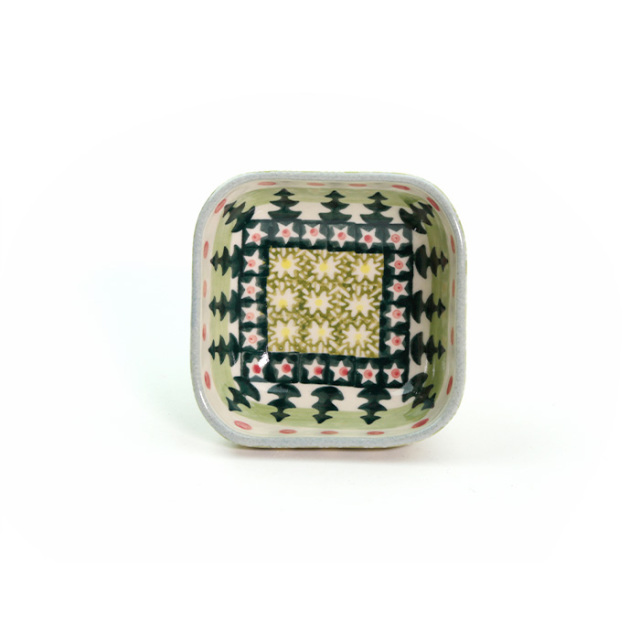 もみの木がモティーフになっているクリスマスにぴったりのデザインです。もみの木のスタンプがとてもWIZA社らしい味を出しています。ポーリッシュポタリーに用いられる色としては比較的少ないグリーン系の配色で、赤いドットがとても効果的に配置されているところも素敵です。眺めているうちに心が和んでくる素朴な温もりに包まれています。