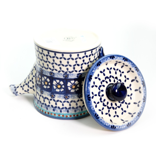 このティーポットの本名は"Tea Pot Lidia(ティーポット・リディア)"と言います。WIZA社の社長のLidia Jopさんによって作られました。ボディは円錐形ではなく、径は底から上部に向かって広がっています。蓋は、茶筒の内蓋のように縁から中に凹ませてある作りで、しっかり持てる大きなハンドルもフォルム全体のバランスにおいて重要な役割を果たしています。オリジナリティ溢れるWIZA社ならではの、楽しい形のティーポットです。