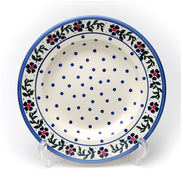 TOP皿(プレート) スープ皿・パスタ皿 縁の平らなリムがスタイリッシュなスープ・パスタ皿 平らなリムがかっこいいスープ・パスタ皿。シチュー、パスタ、リゾット、カレー、炒飯など日本の食生活において、最も活躍頻度の高いお皿の一つです。 素朴でシンプルな愛らしさ 愛らしい花柄とブルーのドットが、クリーム色の素地にとてもよく似合っています。デザイナーはBeata Broda(ベアータ・ブローダ)さん。花びらのスタンプの形や色使いが、とてもWIZA社らしいデザインです。 スープ・パスタ皿(W204-73) 価格: ¥6,875 (税込) 販売期間: 数量: 枚 在庫: あり 在庫 あり 返品についての詳細はこちら レビューはありません 商品詳細 直径 23cm 高さ 4cm 製造元 Ceramika Artystyczna WIZA(ヴィザ) 生産国 ポーランド