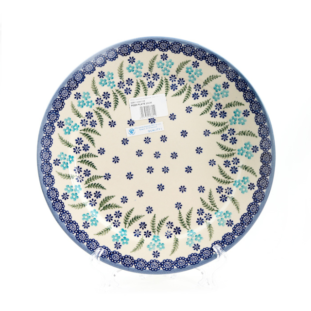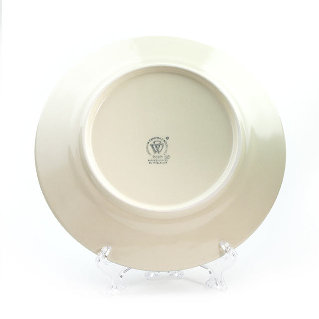 製造元での名称は"PIZZA PLATE"。リムの部分が平らになっていて、一段下がったその表面も平らに作られています。フォルムとしても個性的で、なかなかカッコいいデザインだと思います。PIZZA用など1枚皿での利用は勿論ですが、ディナープレートとしても丁度良い大きさです。引出物や贈答品としてもお勧めの一枚です。