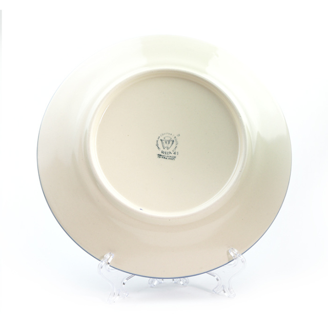 製造元での名称は"PIZZA PLATE"。リムの部分が平らになっていて、一段下がったその表面も平らに作られています。フォルムとしても個性的で、なかなかカッコいいデザインだと思います。PIZZA用など1枚皿での利用は勿論ですが、ディナープレートとしても丁度良い大きさです。引出物や贈答品としてもお勧めの一枚です。