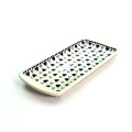 長方形の平たいトレイ。オードブルのように横並びにお料理を盛り付けたり、天ぷらを盛り合わせたり、長細いお魚を盛り付けたり、とうもろこしやメロンやスイカなど果物を乗せたり、調味料を並べ置いたり、・・・様々な用途が考えられる楽しいお皿です。少し深さもあるので、ちょっと汁気のあるお料理にも対応できます。長方形のダイニングテーブルの中央にも置きやすく納まりが良いトレイです。