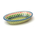 もみの木がモティーフになっているクリスマスにぴったりのデザインです。もみの木のスタンプがとてもWIZA社らしい味を出しています。ポーリッシュポタリーに用いられる色としては比較的少ないグリーン系の配色で、赤いドットがとても効果的に配置されているところも素敵です。眺めているうちに心が和んでくる素朴な温もりに包まれています。