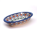 両縁の部分に1cm程度の羽があり、熱くなったお皿をミトンで運ぶときにも抱えやすくなっています。適度な深さで使い勝手も抜群。容量的には、一人分のグラタンなどに丁度良いサイズです。葡萄や西瓜などフルーツを装ったり、様々にご利用いただけます。